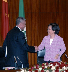 答問會(huì)結(jié)束,何厚鏵與曹主席握手。(圖片來源:澳門日?qǐng)?bào))