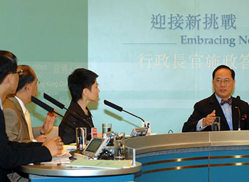 曾蔭權重申,特區政府堅持“大市場、小政府”的原則,但金融市場有需要時,特區政府必定采取快而準、到位及夠力度的行動,但沒有需要時,特區政府必定退出。