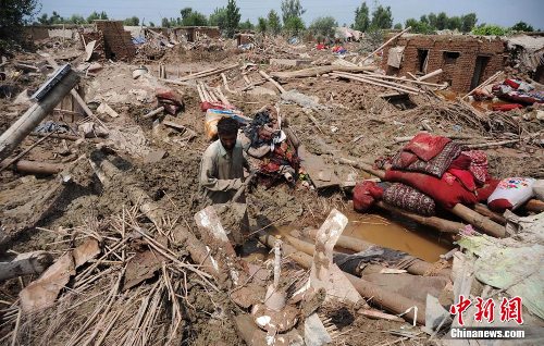 中新網8月3日電 綜合外電報道,聯合國兒童基金會估計,遭遇80多年來最嚴重洪災的巴基斯坦已經使數千人遇難,300萬人成為災民。另外,聯合國表示,有98萬到100萬人家園被肆虐的洪水毀壞,流離失所。