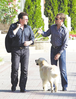 與普京的喜好不同,梅德韋杰夫似乎更加儒雅。他24日來到黑海之濱索契的一處海灘,約見愛爾蘭U2樂隊主唱波諾一同喝茶。U2樂隊本周將在俄羅斯首次舉行音樂會。