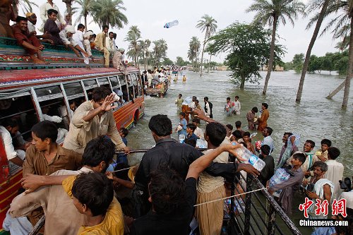 中新網8月26日電 綜合媒體報道,巴基斯坦特大洪災仍在延續,洪水暫無消退跡象,使得該國遭遇有史以來最為嚴重的人道主義危機,超過1500人喪命,2000萬人遭災。災區出現傳染病蔓延的現象,當局擔心可能造成瘟疫,必須及時采取措施。國際社會呼吁為巴基斯坦提供高達7億多美元的援助資金,中國積極援助鄰邦,向巴基斯坦提供了總價值1.2億元的救災物資。26日,由于洪魔逼近,巴當局下令疏散50萬民眾。