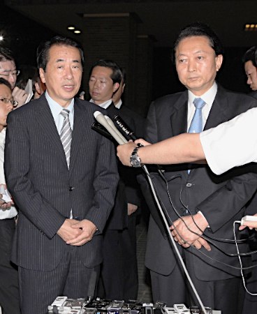 據報道,在會談后舉行的記者會上,菅直人表示,鳩山帶來了小澤一郎的話,希望維持民主黨長期以來“小澤一郎、鳩山由紀夫、菅直人”的“鐵三角”的領導體制,考慮到參議院已經出現了野黨控制過半數議席的局面,因此希望再加上民主黨的參議院會長輿石東,形成一個新的集體領導體制。