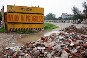 印度當地的土地回購和環境影響的訴訟則進一步延緩了籌備工作。如今,50億美元的籌備費用已是2003年預算的10倍,卻也并沒有使新德里的面容有所改觀。它更像是一個布滿碎片、漏雨屋頂、被挖開的人行道和破敗游泳池的巨大工地。