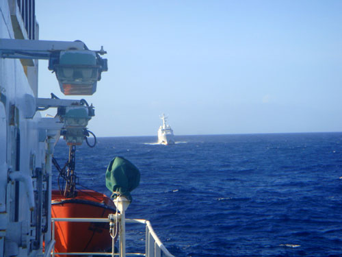 9月12日夜幕降臨時分,“中國漁政202”船轉向東北方向巡航,5艘日本海上巡邏船竟全部隨行。據孫士薦說:“它們就一路尾隨著我們的船,直到第二天早上。
