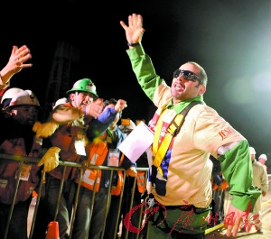 本報訊 按照救援計劃,為大家殿后的是33名受困礦工組長、現年54歲的路易斯·烏爾蘇亞。雖然烏爾蘇亞僅在銅礦工作2個月,但這并不妨礙他領導33人為生命而拼搏。礦難發生后,他一直擔當“領袖”,帶領礦工們共度時艱,被視為礦工中的“靈魂人物”,幫助工友渡過難關,實行食物配給制。