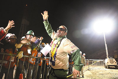 中新網10月14日電 綜合媒體報道,史上最長的礦井救援行動14日迎來最終勝利,智利救援人員用特制救生艙,把33名被困在近700米深地底達69日的礦工逐個運回地面。智利總統表示,這次艱巨救人行動對礦工與智利都是“真正的重生”。被救礦工心情各異,有人想第一時間知道自己變成什么模樣,也有人擔心逃生井在救援過程中坍塌。
