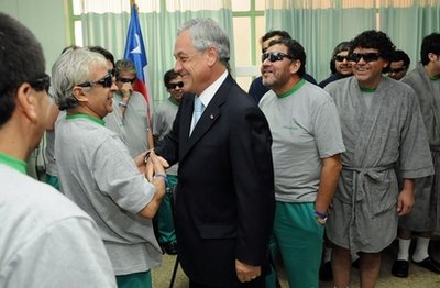同時,智利總統皮涅拉在堅守礦井現場,迎接所有礦工逐一出井后,當天前往礦工所在醫院進行探望。他與礦工們握手交談,對他們重獲新生表示祝賀。