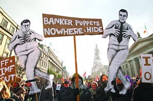 愛爾蘭多個工會27日組織罷工,不少人冒著嚴寒抵達都柏林,參加游行,抗議政府為爭取金融援助而制定的削減財政赤字計劃。