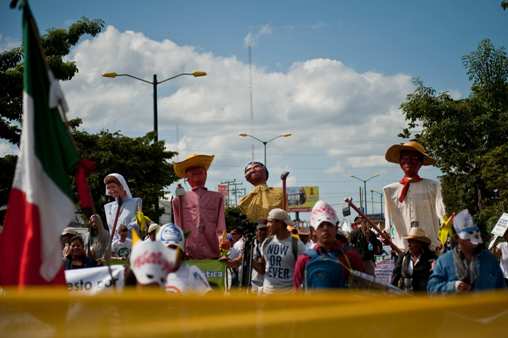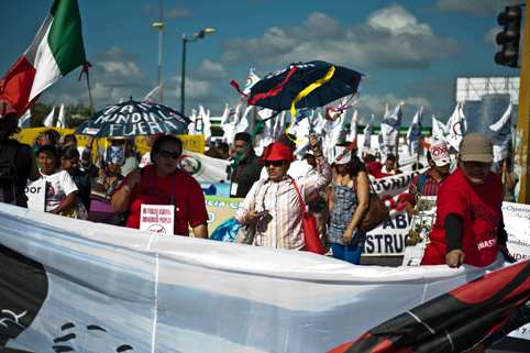 主辦方稱當天有數千人參加了示威游行活動。然而由于此次游行在距離會場幾十公里外的坎昆城舉行,因而對會議本身的影響很小。墨西哥警方也增派了大量警力鎮守,現場秩序比較穩定,民眾和警察之間沒有發生沖突。