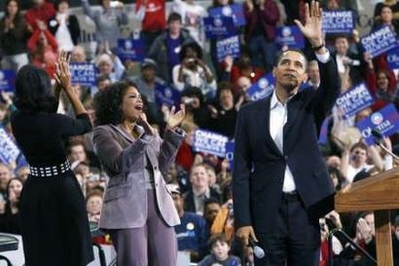 奧普拉是美國(guó)著名的脫口秀節(jié)目主持人,她的美國(guó)觀眾群人數(shù)接近5000萬(wàn)。她被媒體譽(yù)為美國(guó)、甚至全世界最有影響力的女人之一。奧普拉在5月份表態(tài)支持奧巴馬的總統(tǒng)競(jìng)選努力,在9月份還親自為奧巴馬主持一次籌款活動(dòng),為奧巴馬籌得300萬(wàn)美元。