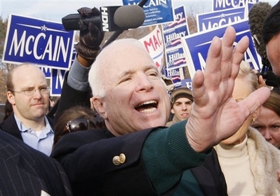 中新網1月9日電 據美國媒體報道,1月9日,麥凱恩在新罕布什爾州共和黨初選中獲勝。1月8日舉行的美國新罕布什爾州初選是美國第一場正式初選。
