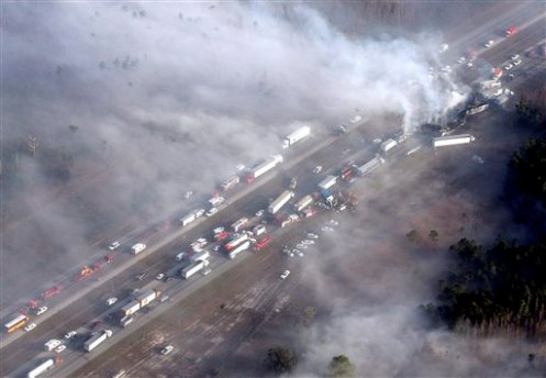 據悉,目前還不清楚這條通往佛州的東西主要干道何時重新開放。佛州高速公路的巡警拉里說,大約有38人受傷,其中5人傷勢嚴重。由于當地森林火災引起的濃煙和大霧相混合,導致事故發生路段的能見度極低。有幸存者說,在進入事故發生路段的時候,甚至“看不見眼前自己的手”。