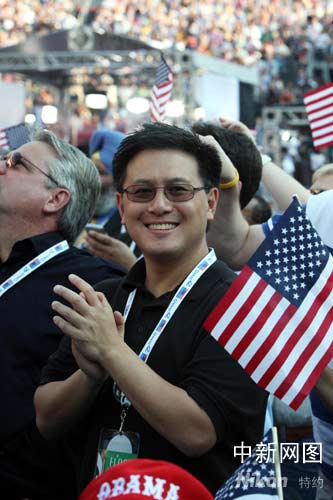 中新社丹佛八月二十九日電(記者 李靜)四十六歲的江俊輝二十八日站在美國丹佛橄欖球體育場中央,聽著講臺上的民主黨總統候選人奧巴馬講述“美國夢想”,臉上流露出興奮、敬佩和憧憬。