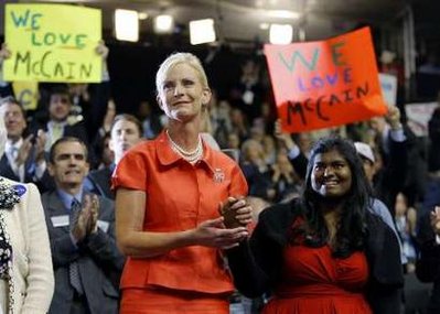 麥凱恩妻子辛迪與孟加拉裔養女在共和黨代表大會上。