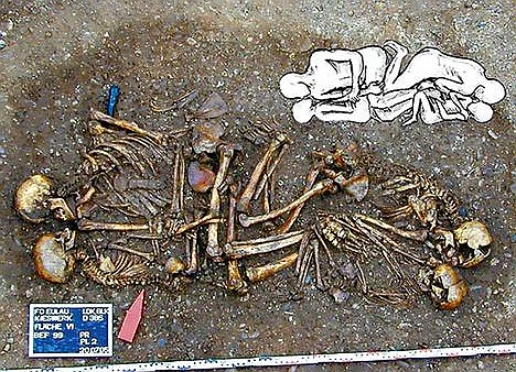 德國考古學家日前在安哈爾特尤魯地區一個石器時代墓地發現了距今4600年前石器時代一個核心家庭(僅由父母及子女組成)的墓葬——墓室中埋葬著母親、父親以及兩個孩子的尸骨。