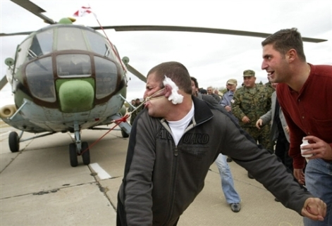 現年27歲的前摔跤冠軍拉沙•帕塔拉亞(Lasha Pataraya)搓了搓耳朵,在耳朵后面塞棉花,深深地吸了一口氣,開始了他的超級大挑戰,用耳朵拉動米-8俄羅斯軍用直升機。