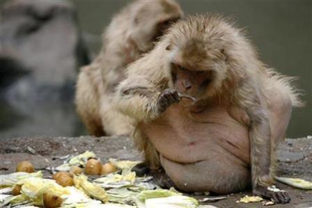 游客喂食過多 日本一動(dòng)物園肥猴減肥(圖)