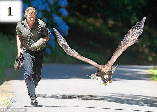 白尾海雕九十年代初期在英國絕跡,不過在啟動重新引進項目后,蘇格蘭地區已有一些白尾海雕。這只名為埃維的白尾海雕是在比利時人工飼養的,“她”兩歲的時候來到亨吉斯在達特穆爾的養鷹場。養鷹場的所有鳥都要經常放飛鍛練,但亨吉斯也采取了一些措施以確保它們獲得一些“玩樂時間”。