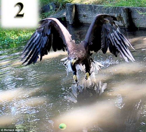 據英國《每日郵報》今天報道,一只四歲的白尾海雕“埃維”愛上了叼網球的游戲,每當埃維的主人將黃色的網球扔出去后,“她”總是會將網球叼回來。