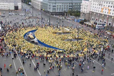 俄羅斯萬人組成巨大笑臉