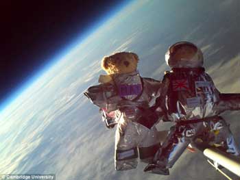 日前,一群英國(guó)學(xué)生將四只泰迪熊成功送到太空中,玩了一把“玩具熊太空行走”。