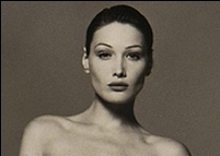 這種白色帆布手提袋上所印的是當時身為名模的布呂尼在1993年拍攝的一幅站立的全身裸體形象。