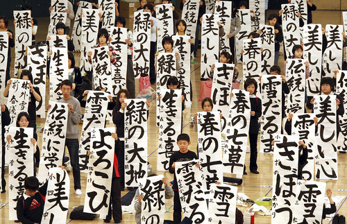 中新網(wǎng)1月6日電 綜合報(bào)道,日本一年一度的新年書(shū)法比賽5日在東京舉行,大約有3000名經(jīng)過(guò)地方選拔的選手參加了比賽。