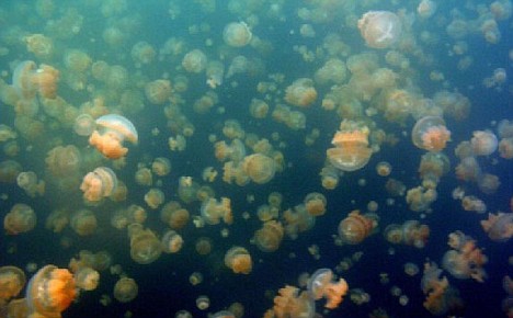據英國媒體報道,來自美國波士頓的的計算機科學家弗拉德日前在世界上絕無僅有的無毒水母湖拍攝了自己女兒和水母嬉戲的圖片。他形容在帕勞水母湖里游泳如同置身于果凍中,“我們越往湖中游,就有越多的水母將我們包圍,看著云集的水母,真是令人愉快。”