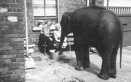 二戰(zhàn)中,貝爾法斯特當?shù)鼐鞛榱朔乐罐Z炸造成動物逃跑傷人,共槍殺了23只動物,包括一只老虎、一只黑熊、一只猞猁、一只鬣狗、兩只北極熊和六只狼。而這只大象幸運的被一位婦女發(fā)現(xiàn),并被藏于婦女家中得以逃生。