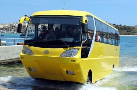 該種擁有50個座位的巴士與普通巴士一樣能以時速70英里在陸上行駛。當遇到水路時,只需輕按開關(guān),巴士的輪子就會縮進車身,空氣活門便會推動巴士,巴士便能在水中航行,并且淡水和海水均適用。不過這種巴士并不便宜,一輛售價就要28萬英鎊。