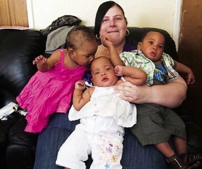 中新網(wǎng)4月29日電 英國(guó)一名年僅24歲的單親媽媽,體重高達(dá)184公斤,身形龐大,靠著社會(huì)救濟(jì)金生活,她以麥當(dāng)勞的炸雞薯?xiàng)l喂僅6個(gè)月大的三胞胎,震驚社會(huì)。