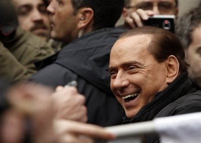 貝盧斯科尼抵達(dá)在羅馬的官邸時,受到了很多支持者的歡迎,他們打出“歡迎回來”的條幅。貝盧斯科尼表示感覺良好。