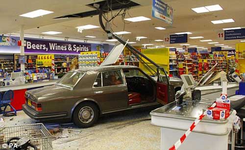但沒(méi)想到這名醉漢竟返回停車(chē)場(chǎng),發(fā)動(dòng)他的勞斯萊斯豪華轎車(chē)徑直向超市沖去。