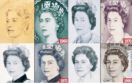 據報道,1960年5月17日,英國女王伊麗莎白二世的頭像首次出現在對外流通的紙幣上。女王頭像分別在1960年、1963年、1970年、1971年以及1990年共5次經過重新描畫,作了改動。此外,有的頭像是畫于同一時期,但用在不同面值的紙幣上。