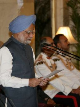 就職典禮由印度總統帕蒂爾(女)親自主持,印度各黨派領導人以及各國駐印度使節等出席了就職典禮。現年76歲的辛格成為印度歷史上繼首任總理尼赫魯之外的第二位連任總理。