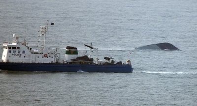 韓國海軍和海警消息人士表示,在攝氏8至10度的水溫中,落水者通常可以存活3個小時,其后便兇多吉少,為了搶救更多人命,海軍正徹夜全力搜索。