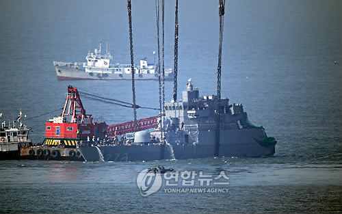 韓國軍方有關人士表示:“沉重的門鈕和煙筒能被損毀丟失,表示當時受到了強力沖擊。”“可以將門鈕損毀的沖擊,一般可以對乘務官兵造成昏厥。”