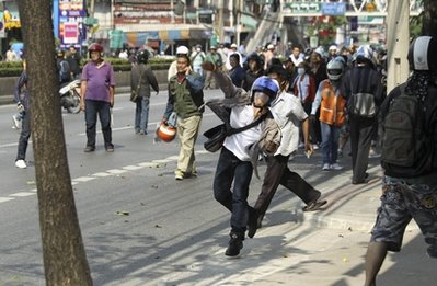 泰國軍隊(duì)在包圍紅衫軍的據(jù)點(diǎn)后,雙方發(fā)生嚴(yán)重沖突,軍隊(duì)使用實(shí)彈射擊。身在現(xiàn)場的記者稱,曼谷市中心的道路上看到燃燒的汽車,聽到槍聲、爆炸聲,天空有直升飛機(jī)盤旋,感覺如同戰(zhàn)場一樣。