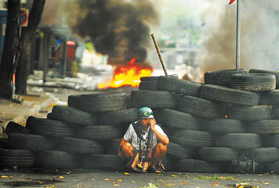 13日,為了逼迫占據(jù)曼谷繁華商業(yè)區(qū)已近兩個月的“紅衫軍”撤離,泰國政府切斷了該商業(yè)區(qū)的水電供應(yīng),“紅衫軍”隨即與軍警發(fā)生沖突。16日,“紅衫軍”點(diǎn)燃了作為路障的汽車輪胎,一股股濃煙騰空而起。此外,他們還把警察設(shè)立的交通檢查站潑上汽油并放火焚燒。