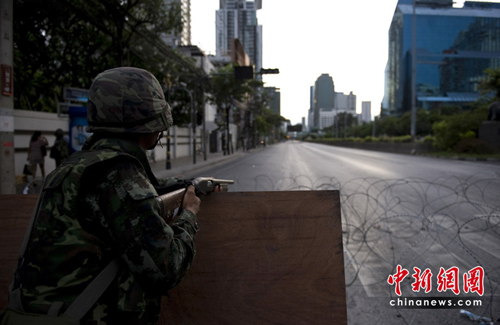 5月13日晚,泰國軍方封鎖紅衫軍示威地點(diǎn),試圖結(jié)束示威活動(dòng)。雙方因此發(fā)生嚴(yán)重暴力沖突,不斷造成人員傷亡。
