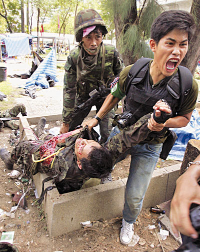 中新網5月21日電 據香港《文匯報》報道,泰國軍方清場與紅衫軍激戰,曼谷慘成戰場,國際人權組織“人權觀察”20日指摘雙方嚴重侵犯人權,批評紅衫軍射殺記者,又以兒童作為人盾,行徑應遭譴責。