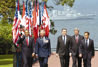 會面后,4人之后會一同前往美軍墓園,與英國首相布朗、英國王儲查爾斯和加拿大總理哈珀會合。奧巴馬在墓園內向包括200名美國退役軍人的9000人發表講話。