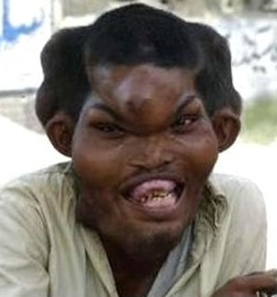 中新網5月23日電 據臺灣“東森新聞”援引德國媒體報道,距離巴基斯坦第二大城市拉合爾100公里遠的拿熱瓦而,有一個面貌長的像“魔鬼”般恐怖的男子,由于他罹患一種罕見且無法治愈的遺傳疾病,因此導致身體一些部位變形,臉上與身上都凹凸不平,就像是電影里的人物。