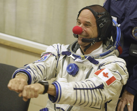 拉里柏提被封為進入太空的第一位小丑,他一共帶了九個紅鼻頭,太空站人人有份。他在出發(fā)前說:“我將帶著我的幽默升空。即使在這樣嚴肅的場合,仍然需要留點幽默的空間。”不過,他也得肩負嚴肅的任務(wù)。拉里柏提打算從國際太空站主持一場兩小時的實況轉(zhuǎn)播表演,倡導潔凈用水以及保護地球水資源的重要性。