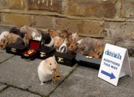 這項(xiàng)活動一推出,英國民眾便紛紛幫自家的倉鼠拍攝音樂視頻并寄給主辦單位。主辦者餓專門制作了一批迷你樂器——如豎琴、迷小號、薩克斯管、長號、小鼓等——給倉鼠們使用,并在咖啡館外進(jìn)行了一輪又一輪的“海選”。