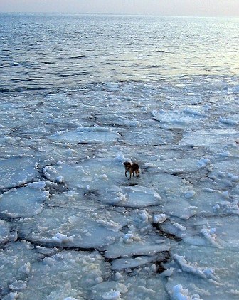 但是奇跡發(fā)生了:這只英勇而又幸運(yùn)的小狗踩著浮冰,順河再往北漂流了50英里,直到河流的入海口,一艘科考船發(fā)現(xiàn)了它的蹤影。