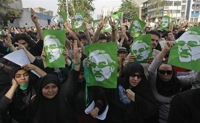 18日,幾萬名佩戴綠色標(biāo)志物的穆薩維支持者,高呼口號(hào)向德黑蘭一個(gè)主要廣場(chǎng)出發(fā),參加一年一度的“圣城(耶路撒冷)日”集會(huì)。“圣城(耶路撒冷)日”是伊朗每年舉行的反對(duì)以色列、支持巴勒斯坦的大會(huì)。伊朗總統(tǒng)內(nèi)賈德將在此次大會(huì)上發(fā)表演講。