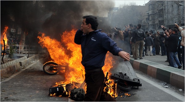 在德黑蘭的部分地區,示威者向警察投擲石塊,并奪取了警方汽車與摩托車,并放火點燃。