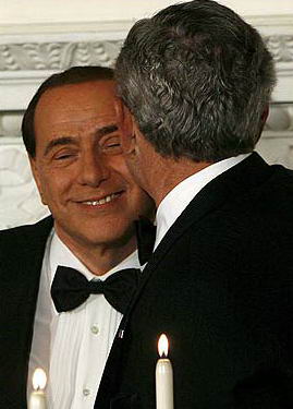 據英國《太陽報》報道,即將離任的美國總統布什13日晚在白宮為來訪的意大利總理貝盧斯科尼舉行了晚宴,兩人在宴會上表現的非常親密,完全可以說他們舉行了“面對面”的會談。