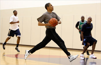 奧巴馬經(jīng)常打籃球,甚至在大選日也堅(jiān)持鍛煉。